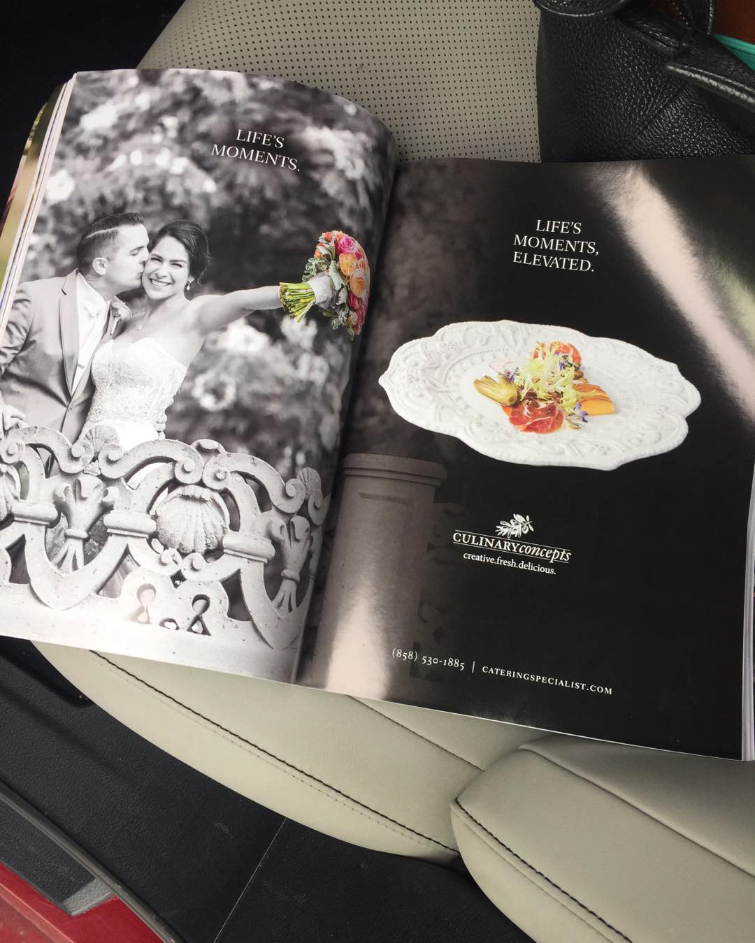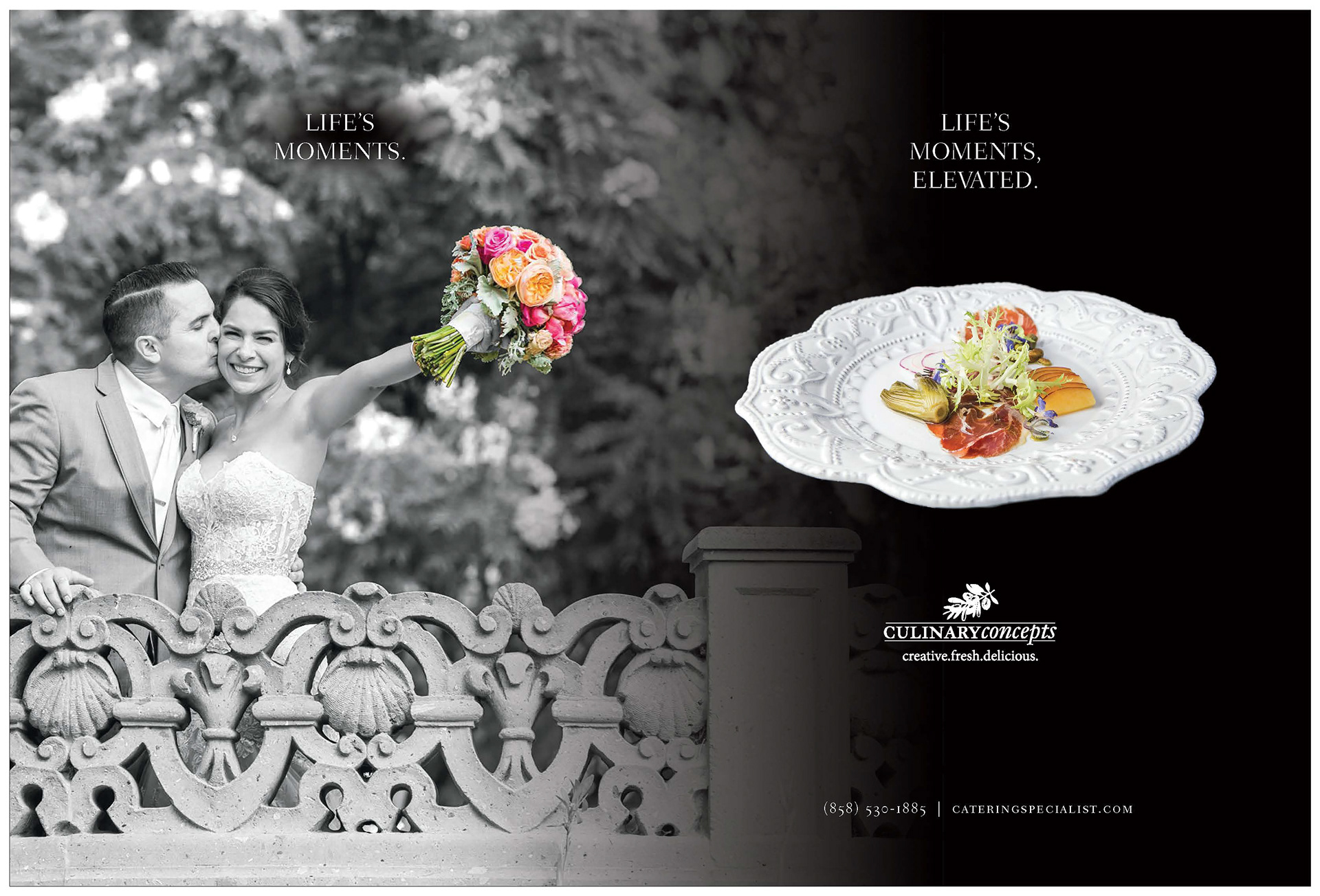 2 page magazine spread for Culinary Concepts, a San Diego based catering company that specializes in weddings, corporate events and conventions.